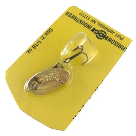 Zlacení pokrývá jak kapkovité tělo, tak unikátní konvexně-konkávní list této rotačky velikosti 2. S váhou 3/32oz (2,5g) a celkovou délkou 1 1/2" (4cm) je tento exemplář ukázkovým příkladem inline konstrukce, kterou zpopularizovala společnost Harrison Hoge Industries. List je namontován přímo na ose bez třmenu, což mu umožňuje rotovat v těsné blízkosti zátěže. Tato nástraha s produktovým kódem 5169 zůstává nepoužitá v původním žlutém kartonovém balení, které nese adresu Port Jefferson, NY a uvádí jako původ Dominikánskou republiku. Přestože je na přední straně obalu uvedeno 1/16 oz, specifická katalogová data pro tento kus uvádějí 3/32oz (2,5g). Osazení tvoří extrémně ostrý trojhůček a na zadní straně karty je uvedena webová adresa PantherMartin.com spolu s povinnými bezpečnostními varováními.