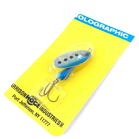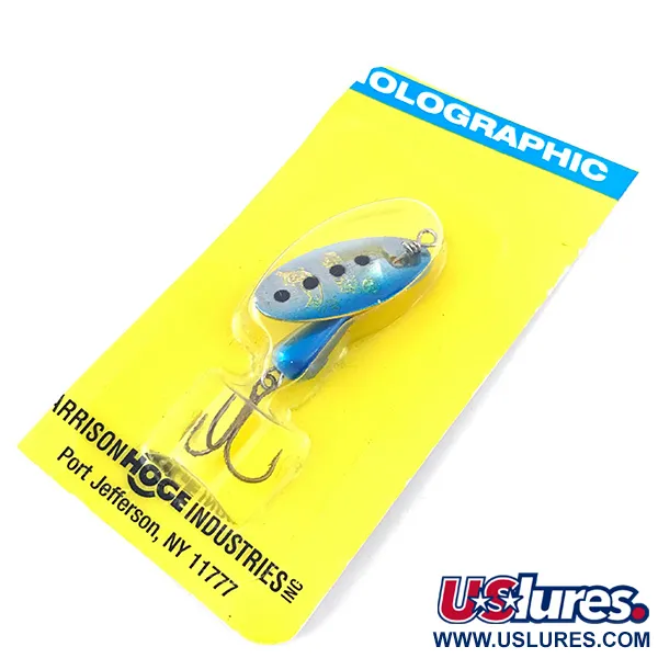 Tento exemplář v holografické úpravě Blue Trout má list potištěný čtyřmi výraznými tmavými skvrnami na modrostříbrném přechodu. Jedná se o nepoužitý kus Panther Martin 4, stále v původním balení Harrison Hoge Industries z Port Jefferson, NY. Tato 4g (1/8 oz) nástraha využívá klasický kapkovitý design těla, vyvedený v ladící sytě modré barvě, která doplňuje holografický list. Konstrukce o celkové délce 4,5 cm (1 3/4") vyniká typickým uchycením listu přímo na ose, což umožňuje rotaci kovu přímo na drátu bez třmínku. Hardware vyrobený v Dominikánské republice obsahuje ostrý trojháček chráněný průhledným blistrem. Žlutý karton s produktovým kódem 5012 zůstává zářivý a potvrzuje, že exemplář je v nepoužitém stavu, nikdy nebyl ve vodě.