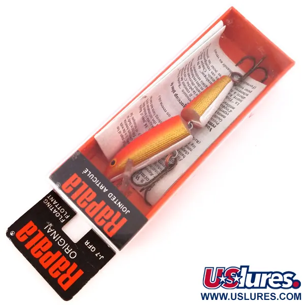 Zlato-oranžové tóny povrchové úpravy GFR (Gold Fluorescent Red) dominují profilu tohoto 7 cm (2 3/4") wobleru z balzového dřeva. Tento Rapala Jointed J-7, ručně laděný a testovaný v nádrži ve Finsku, váží 4 g (1/8 oz) a je konstruován pro práci v hloubkách od 1,2 do 1,8 m. Tento konkrétní kus je nepoužitý, uchovaný v původní oranžové krabičce s originálním návodem. Dělené tělo je navrženo pro přívlač i trolling, přičemž si zachovává stabilní chod i při pomalém vedení stylem "stop and go". Finské řemeslné zpracování je patrné na přesné montáži kloubových segmentů, což je vlastnost určená k vyvolání útoku pstruhů, okounů a štik. Štítek potvrzuje model J-7 GFR, který je stálicí pro rybáře oceňující vzplývavost a citlivost pravé balzy.