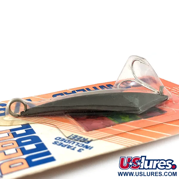 Tato trollingová plandavka s hmotností 17 g (3/5 oz) se vyznačuje specifickou hranatou geometrií typickou pro sérii Arrowhead T/S. Tento model od výrobce Rebel, značky spadající pod Pradco, nese kód produktu 15144 a byl vyroben v USA. Kovové tělo o délce 9 cm (3 1/2") má vyražené logo Rebel a vysoce reflexní povrchovou úpravu. Přestože katalog uvádí barvu jako černou (Black), nástraha má leštěný povrch navržený tak, aby vytvářel odlesky při trollingu v hloubkách určených downriggerem nebo potápěčem. Tento nepoužitý kus zůstává zataven v původním obalu s copyrightem z roku 1990, který obsahuje tři vícebarevné lepicí pásky pro individuální úpravu vzhledu nástrahy ve vodě. Design, který podpořil moderátor PBS Bill Saiff, byl speciálně navržen pro lov dravých ryb ve Velkých jezerech i ve slané vodě, jako jsou lososi a steelheady.