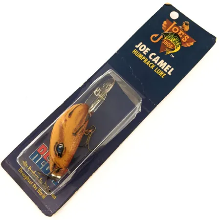 Tento reklamní předmět v nápadném béžovém provedení nese ikonického maskota Joe Camel přímo na svém 5cm (2") profilu. Model Humpback Humpy (kód produktu 12894), vyrobený společností Rebel pro Joe's Tackle Shop, váží 10 g (1/3 oz) a představuje unikátní spojení tabákových memorabilií a historického rybářského vybavení. Tento exemplář zůstal nepoužit v původním blistru, což odpovídá hodnocení stavu 6. Nástraha je vybavena vnitřní chrastící komorou a velkou čirou potápěčskou lopatkou určenou pro dosažení hlubších sloupců vody. Na zadní straně karty text zdůrazňuje spolupráci mezi výrobcem a tabákovou značkou a výslovně uvádí původ nástrahy u Rebel. Výbavu tvoří dva ostré, bronzově upravené trojháčky zajištěné nerezovými kroužky.