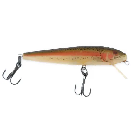 Tento v USA vyrobený minnow o hmotnosti 1/8oz (4g) vykazuje detailní zpracování, kterým se značka Rebel proslavila ve svých počátcích. Nástraha s produktovým kódem 11085 má realistický vzor Rainbow Trout na poloprůhledném základu Ghost. Plastové tělo o délce 2 3/4" (7cm) je osazeno dvěma ostrými trojháčky zajištěnými pevnými kroužky. Integrovaná čirá lopatka je navržena pro dosažení hloubek mezi 0,9-1,8m (3-6ft), což z ní činí univerzální volbu pro přívlač i trolling. Tento exemplář je ve stavu 5/5, vykazuje skvěle zachovalý hardware a jemné tečkování na bocích. Rybáři s tímto plovoucím modelem obvykle slaví úspěchy při plynulém přitahování nebo klasickém vedení typu stop-and-go.
