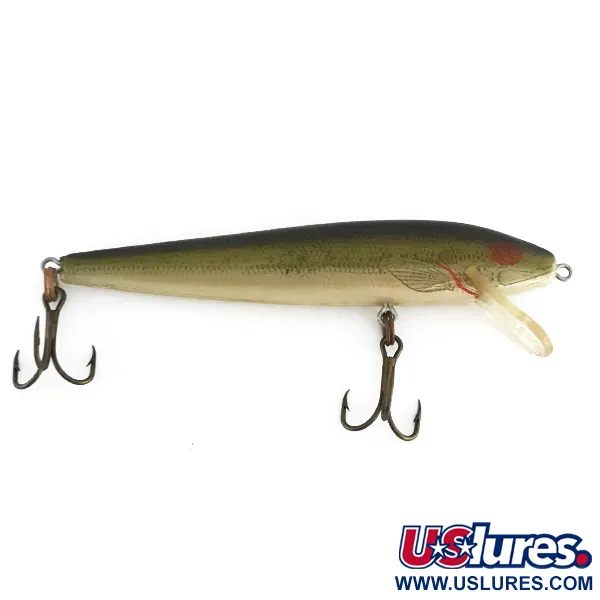 Tento 9 cm (3 1/2") model v klasickém vzoru Bass představuje detailní šupinatou texturu a potisk postranní čáry, kterými se značka Rebel proslavila. S hmotností 6,5 g (1/4 oz) je Rebel Floater (kód produktu 7952) základním kamenem americké historie nástrah, vyrobený z odolného plastu v USA. Jeho čirá lopatka je navržena tak, aby dosahovala hloubek mezi 0,9 m (3 ft) a 1,8 m (6 ft), což jej činí univerzálním pro přívlač i trolling. Povrchová úprava tohoto konkrétního kusu je ve vynikajícím stavu 5/5, s tmavě olivovým přechodem na hřbetě a jemným krémovým břichem. Všimněte si výrazného červeného akcentu u skřelí, což je charakteristický vizuální spouštěč tohoto modelu. Je vybaven dvěma originálními trojháčky a skvěle se hodí pro plynulé navíjení nebo techniku stop-and-go. Kovové části zůstávají lesklé a bez opotřebení, což zachovává původní estetiku zamýšlenou výrobcem.