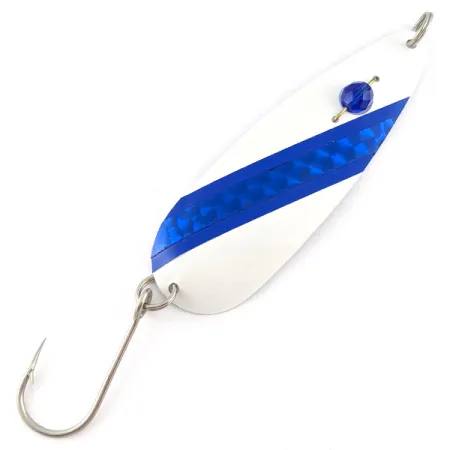 Výrazná modrá fólie se vzorem včelí plástve doplňuje čistě bílou povrchovou úpravu této plandavky Red Eye Evil Eye. S délkou 9 cm a hmotností 9 g je její profil navržen pro výbornou viditelnost při trollingu i klasické přívlači. Typické broušené modré oko v podobě korálku, klasický znak nástrah Red Eye Lures vyrobených v USA, je pevně usazeno v lisovaném kovovém těle. S hodnocením 5/5 si tento kus zachovává svěží vzhled laku i osazení, které tvoří jednoháček upevněný přes spojovací kroužek. Produktový kód 23367 demonstruje, jak výrobce využívá různé textury k odrazu světla z mnoha úhlů.