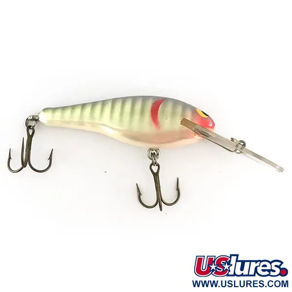 Tělo tohoto wobleru Renegade Little Diver je vyřezáno ze dřeva Jelutong a opatřeno perleťovou povrchovou úpravou s UV-aktivními vlastnostmi. S hmotností 9 g (1/3 oz) a délkou 7 cm (2 3/4") je tato nástraha určena pro lov druhů, jako jsou tloušti a okouni, v hloubkách do 2 m (6,5 ft). Vizuální vzor tvoří tmavé vertikální pruhy na perleťových bocích, doplněné výraznou červenou značkou žaber za klasickým žluto-černým okem. Každý kus ze série 8475 prošel ručním zpracováním, což zajišťuje vysokou úroveň povrchové úpravy dřevěného těla. Tento konkrétní kus je ve stavu 5/5, zachovává si původní lesk a má ostré, netknuté trojháčky. Čirá potápivá lopatka je pevně integrována do hlavy a je nastavena tak, aby dosáhla cílové hloubky při zachování vzplývavosti vlastní přírodnímu dřevu.