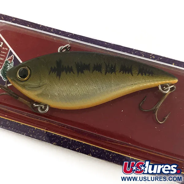 Nenápadný olivově zelený hřbet přechází u tohoto bezlopatkového wobleru v bledě zlaté břicho a napodobuje vzor Baby Bass s výrazným tmavým svislým mramorováním podél postranní čáry. S hmotností 1/2 oz (14 g) je Renegade Pro Series (#12923) potápivá nástraha navržená pro variabilní kontrolu hloubky, což rybářům umožňuje prochytávat různé části vodního sloupce. Tělo o délce 2 3/4" (7 cm) má vícek komorovou konstrukci, která ukrývá vnitřní chrastítko pro akustické vábení. Výbava zahrnuje originální trojháčky Eagle Claw připevněné pomocí nerezových kroužků. Tento kus je v nepoužitém stavu, se zachovanými originálními ručně malovanými detaily a holografickými šupinami. Je vhodný jak pro nahazování, tak pro trolling, přičemž jeho design cílí na druhy od okounů a candátů až po štiky a pstruhy. Očko pro vlasec je umístěno na horní straně hlavy, což je typické pro tento typ lipless woblerů a udržuje špičku při přitahování skloněnou dolů.