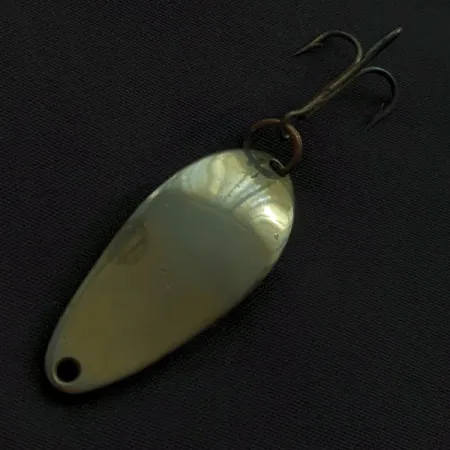 Značka „A SENECA LURE“, vyražená přímo na leštěném konkávním povrchu, identifikuje tuto 4cm (1 1/2") plandavku jako autentický kus americké rybářské historie. S hmotností 7 g (1/4 oz) nese tento exemplář produktový kód 23062 a odráží světlo svým jasně stříbrným povrchem. Osazení zůstává robustní a zahrnuje pevný kroužek v barvě mědi, který spojuje kovové tělo s trojháčkem v tmavé povrchové úpravě. Sběratelé okamžitě rozpoznají označení „WIGL-LURE“, které je typickým znakem původní produkce éry Seneca z USA. Tato Seneca Little Cleo si zachovává vysoce kvalitní vzhled, přičemž za svůj reflexní povrch a jasné, hluboce ražené písmo získala hodnocení stavu 4/5. Očko pro navázání v horní části nástrahy nevykazuje žádné známky opotřebení, zatímco rozložení hmotnosti je soustředěno do klasického kapkovitého tvaru. Tmavý potah trojháčku s protihroty vytváří ostrý vizuální kontrast k vysoce lesklému kovu.