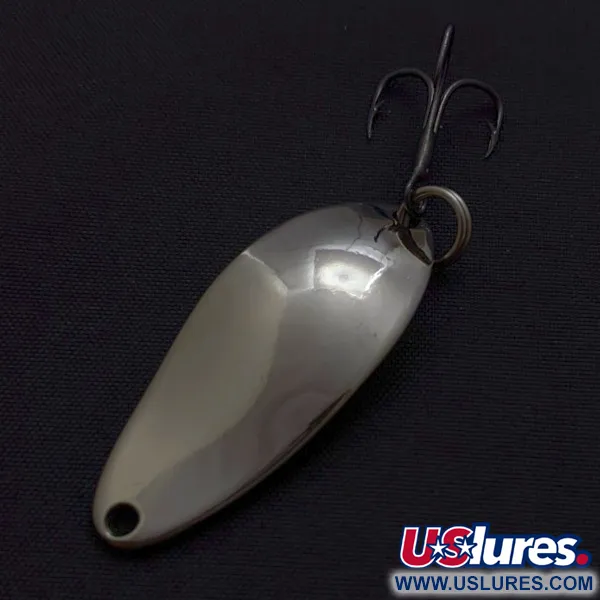 Tato niklová plandavka s jasně vyraženým nápisem „Little Cleo Wigl-Lure A Seneca Lure“ na zadní straně má klasické 1 1/2" (4 cm) tělo. Profil s hlubokým prohnutím je tvarován pro efektivní nahazování nebo trolling v různých hloubkách. Při hmotnosti 1/4 oz (7 g) si kovový povrch zachovává jasný, zrcadlový lesk odpovídající stavu 5/5. Seneca tyto plandavky vyráběla s přesným kalibrováním, aby udržela rozložení váhy po celém zakřiveném kovu. Tento konkrétní kus, kód produktu 24460, vykazuje čisté gravírování a tradiční pokovení typické pro americké náčiní z poloviny století.