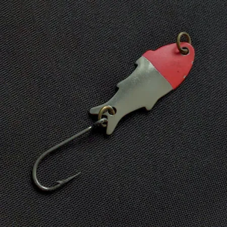 Niklová a červená barva definují klasický povrch tohoto 3cm exempláře, který představuje precizní design nástrahy Shoff's Triple Teazer. S hmotností pouhých 1,1 g (1/32 oz) má toto lisované kovové tělo výrazný profil rybky, který zdůrazňuje jeho americký původ. Na zadní prohnuté straně je jasně viditelná značka výrobce, která nástrahu identifikuje pod kódem produktu 22327. Výbava se skládá z jednoho ostrého háčku upevněného mosazným kroužkem, určeného pro ultralehkou přívlač při lovu pstruhů nebo okounů. Pokud jde o stav, tento kus je hodnocen 5/5, vykazuje výborně zachovalý povrch, kde leštěný nikl i zářivá červená barva na hlavové části zůstávají jasné a neporušené. Druhý mosazný kroužek v přední části slouží jako hlavní bod pro připojení k vlasci.