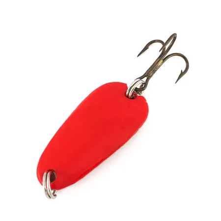 Tato plandavka ze série Sølvkroken Special Classic UV o kompaktní velikosti 1 1/4" (3 cm) je vybavena výraznou fluorescenční povrchovou úpravou, která vynikne i za zhoršených světelných podmínek. Exemplář s produktovým kódem 7825 o hmotnosti 7 g je zkonstruován pro přesnost nahazování a viditelnost v hluboké vodě. Matně červený povrch se pod UV světlem mění, jak je ukázáno na druhém obrázku, a vytváří zřetelnou záři určenou pro použití v tmavším prostředí nebo v hloubkách. Bronzový trojháček připevněný pomocí robustních kroužků je dobře zachovalý a odráží vysoké výrobní standardy spojené s touto značkou. Povrch nástrahy je ve vynikajícím stavu 5/5 a zachovává si hladký a zářivý nátěr po celém těle.