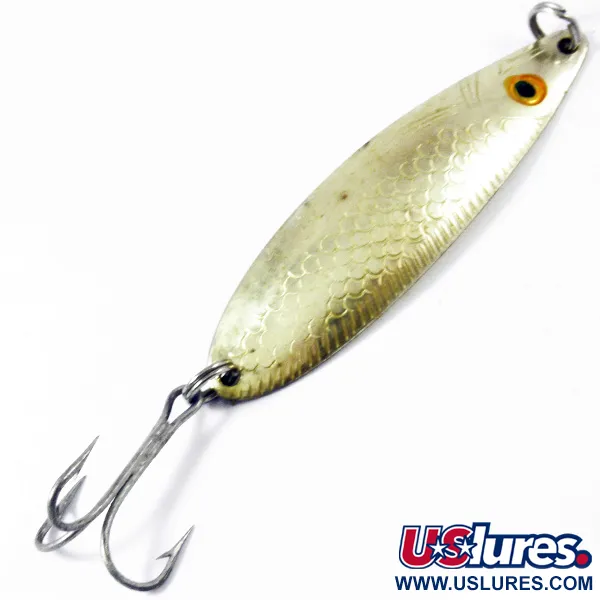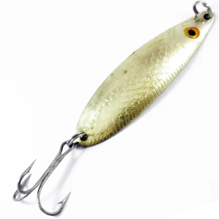 Váha 10g poskytuje této norké plandavce potřebnou hustotu pro efektivní dosažení cílových hloubek. Sølvkroken Storlaksen o délce 7,5cm se vyznačuje jasným zlatým povrchem, který byl zachován ve stavu 5/5. Přední strana nástrahy je opatřena realistickým reliéfním vzorem šupin a výrazným oranžovým okem s černou zornicí, zatímco zadní strana je hladká a vysoce leštěná. Nástraha s produktovým kódem 3355 je osazena pevným trojháčkem a vysoce odolnými kroužky. Podlouhlý profil je charakteristickým znakem skandinávského designu, navrženým speciálně pro lov v silných proudech lososových řek.