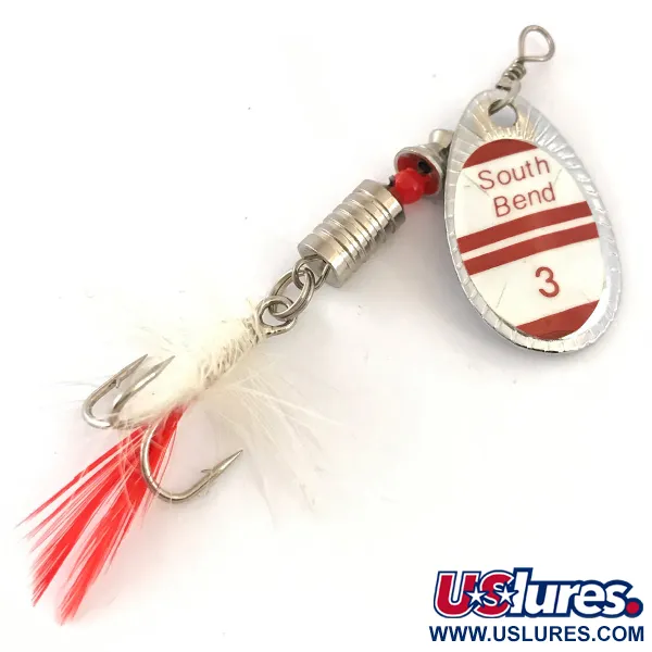 Muzejní archiv: South Bend 3 Rotačka, Nikl/Červená/Bílá, 7g, Trojhák s Peřím, #4185
