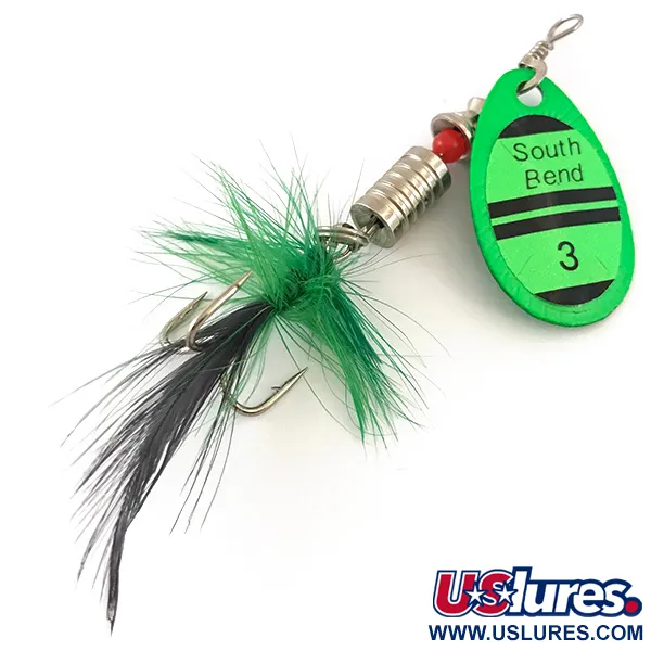 Muzejní archiv: South Bend 3 UV Rotačka, UV zelená, 7g, Opeřený trojháček, #4186