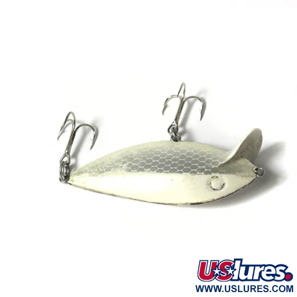 Výrazný vzor včelí plástve definuje povrchovou úpravu Silver White na tomto vintažním Storm Original Thin Fin, který představuje klasickou éru amerického designu rybářského vybavení. Tento model o délce 7 cm (2 3/4") a hmotnosti 5,5 g (3/16 oz) – kód produktu 0034 – využívá profil s plochými boky specifický pro trolling a drifting. Povrchová úprava vykazuje mírné známky stáří, což odpovídá hodnocení stavu 4/5, zatímco stříbrný potisk šupin si zachovává své původní detaily. Tělo vyrobené v USA je osazeno originálními trojháčky a specializovaným nořítkem určeným k udržení stability i v silném proudu. Toto nořítko umožňuje wobleru pohyb ze strany na stranu způsobem odpovídajícím přirozené kořisti. Na okrajích nořítka je patrné mírné ztenčení barvy, což dokumentuje jeho historii jako funkčního rybářského náčiní.
