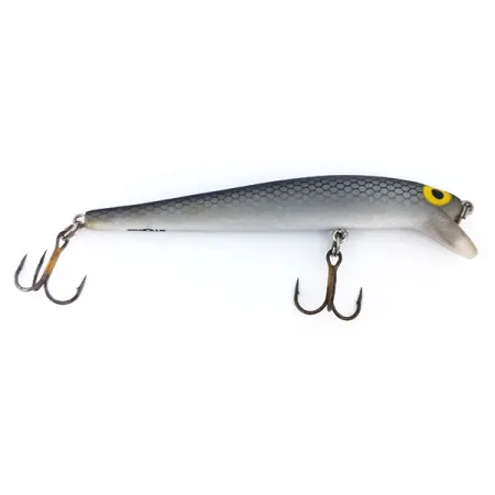 Tento 9 cm (3 1/2") Storm Thunder Stick, zdobený klasickým voštinovým vzorem šupin na hřbetě, ukazuje precizní řemeslné zpracování staré americké produkce. Barevné provedení Silver přechází do bílého břicha a je doplněno velkýma žlutýma očima, které vytvářejí výrazný kontrast pro dravce, jako jsou štiky, candáti a pstruzi. Tento konkrétní exemplář nese produktový kód 10739 a zůstává ve vynikajícím stavu s hodnocením 5/5. Váží 7 g (1/4 oz), je vyvážen pro techniky nahazování a je vybaven čirým nořítkem nastaveným pro hloubky 0,3 - 1,5 m (1 - 5 ft). Výbava zahrnuje dva originální trojháčky zajištěné robustními kroužky, které zachovávají integritu štíhlého profilu typu minnow. Tato plovoucí nástraha představuje období, kdy se Storm soustředil na odolné a jednoduché konstrukce pro efektivní prezentaci v mělké vodě.