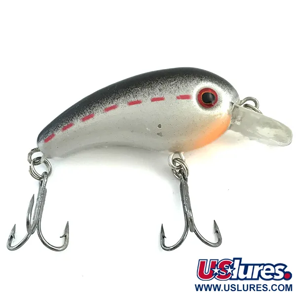 Povrchová úprava se stříbrnými šupinami, jako u tohoto crankbaitu Strike King o hmotnosti 5,5 g (3/16 oz), byla základem pro lov ve středních hloubkách v severoamerických vodách. Tento model o délce 4,5 cm (1 3/4") je vybaven hlubokopotápivou lopatkou z čirého plastu, která při nahazování nebo trollingu dosahuje hloubky až 2 m (6,5 stop). Barevné provedení Silver je doplněno stínovaným černým hřbetem a řadou červených čerchaných značek podél postranní čáry, spolu s jemným oranžovým nádechem na hrdle. Tato plovoucí nástraha s produktovým kódem 5457 byla vyrobena v USA a obsahuje vnitřní chrastítko pro zvukový efekt v různých vodních podmínkách. Osazení zahrnuje dva originální trojháčky v bezvadném stavu 5/5, nevykazující žádné známky opotřebení. Strike King navrhl tento specifický profil pro efektivní lov štik a candátů tím, že během navíjení zůstává v zóně záběru.