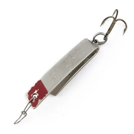 S váhou 1/8 oz (4,3 g) je výrazný profil ve tvaru „U“ této nástrahy Luhr Jensen Super-Duper 503 charakteristickým znakem její unikátní konstrukce pro práci v proudu. Niklové tělo o délce 1 1/2" (3,5 cm) nese jasně vyražené označení modelu a je doplněno klasickým červeným detailem u očka pro navázání. Tato v USA vyrobená nástraha, registrovaná pod kódem 22870, si zachovává svůj původní trojháček i přední drátěný závěs. Exemplář je ve stavu 4/5 a vykazuje drobné povrchové opotřebení červeného laku, zatímco niklování zůstává jasné a reflexní. Její netradiční tvar je speciálně navržen pro nahazování nebo trolling na lehkém vlasci, což z ní činí univerzální nástroj pro lov pstruhů a okounovitých ryb. Strukturální integrita ohýbaného kovového rámu je vynikající a dokládá kvalitu výroby, kterou od vintage náčiní Luhr Jensen očekáváte.