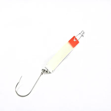 Unikátní tělo této nástrahy South Bend Super-Duper 506 ve tvaru písmene U o délce 1 3/4" (4,5 cm) je dokladem chytrého amerického designu z ohýbaného kovu. Barevné provedení tvoří celobílé tělo s výrazným červeným detailem v horní části, kde je umístěna funkční karabinka pro rychlé upevnění vlasce. Na opačném konci je pomocí robustního kroužku zajištěn velký jednoháček s dlouhým ramínkem. Tento exemplář o hmotnosti 1/4 oz (7 g) s produktovým kódem 0539 je zachovalým kusem americké rybářské historie. Zůstává v kondici 5/5, přičemž lakované povrchy a kovové prvky vypadají stejně jako při opuštění továrny.