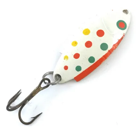 Bílý nátěr slouží jako základ pro barevné schéma White Trout, které je doplněno červenými, zelenými a žlutými tečkami na 4cm těle. Zadní strana této v USA vyrobené plandavky má jasně žlutý povrch, na kterém je do kovu jasně vyražena značka Thomas a název modelu Buoyant. Nástraha vážící 5 g se vyznačuje výrazným oranžovo-červeným pruhem podél spodního zakřivení pro větší vizuální kontrast. Jak lakované povrchy, tak osazení jsou výjimečně zachovalé, což odpovídá hodnocení stavu 5/5. Tento exemplář, katalogizovaný pod kódem produktu 5358, je osazen originálním trojháčkem s tmavou povrchovou úpravou a robustním kovovým kroužkem.