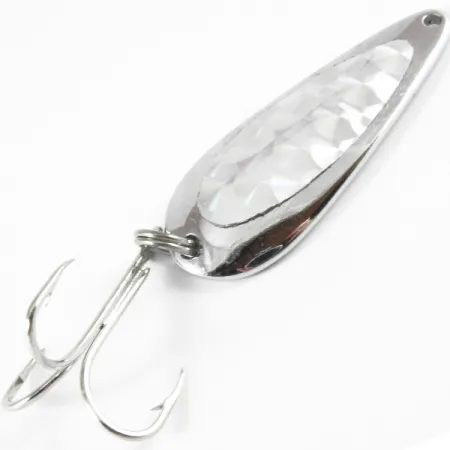 Niklování se na této Tony Accetta 3 H jasně leskne a zachycuje světlo na jejím výrazném strukturovaném prizmatickém povrchu. Tato v USA vyrobená plandavka o hmotnosti 11 g (2/5 oz) se vyznačuje klasickým kapkovitým profilem o délce 4,5 cm (1 3/4"). Sběratelé ocení stav 5/5, který podtrhuje zachovalou integritu kovu a osazení. Konstrukce zahrnuje robustní kroužek připojený k ostrému trojháčku, speciálně navrženému pro techniky nahazování. Tento konkrétní exemplář s produktovým kódem 3728 ukazuje klasické řemeslné zpracování, díky kterému se Accetta stala stálicí v krabičkách na nářadí poloviny století. Fasetovaný vnitřní panel je navržen tak, aby maximalizoval odlesky z různých úhlů během plynulého přitahování.