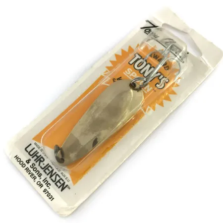 Tato plandavka ze silného kovu, pokovená pravým 24karátovým zlatem, zůstává v původním obalu Luhr-Jensen & Sons z éry Hood River v Oregonu. Exemplář je nepoužitý a vykazuje hodnocení stavu 6, což odráží jeho zachovalý stav v průhledném blistru. Tato nástraha o hmotnosti 11 g (2/5 oz) s produktovým kódem 4933-005-0599 (9488) měří 5,5 cm (2 1/4") a na zadním štítku má vyražené datum výroby 22.06.99. Plandavky Tony Accetta jsou známé svým jednoduchým raženým designem, který využívá povrchovou úpravu z 24K zlata pro maximalizaci odrazu světla při nahazování nebo trollingu. Hardware se skládá z robustního koncového trojháčku a předvrtaného otvoru v přední části pro bezpečné upevnění vlasce. Tento konkrétní kus si zachovává původní vícejazyčnou nabídku z katalogu na zadní straně karty, což je detail typický pro mezinárodní distribuci Luhr-Jensen koncem 90. let.