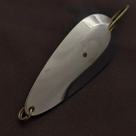 Celý povrch této těžké plandavky pokrývá lesklé niklování a je vybavena integrovaným drátěným chráničem proti vázkám, který slouží k odrážení leknínů a rákosí. Husté kovové tělo o hmotnosti 3/4 oz (21 g) umožňuje stabilní daleké hody do konkrétních ok v porostu. Razítko výrobce na vnitřním zakřivení identifikuje tento předmět jako výtvor Tony Accetta, specializované vybavení pro prostředí s vysokým rizikem uváznutí. Tento exemplář s kódem 24618 zůstává v kondici 5/5, zachovává si svůj původní vysoký lesk a hladký povrch. Jednoduchý háček je připevněn přímo k tělu plandavky a je vyztužen konstrukčním napětím chrániče. Niklový povrch poskytuje vysoce kontrastní záblesky, což zajišťuje viditelnost v kalné vodě nebo při zatažené obloze.