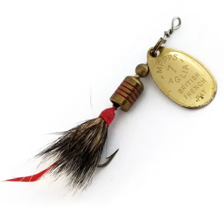 Muzejní archiv: Mepps Aglia 1 dressed (squirrel tail) 1970s Rotačka, Zlatá, 3.5g, #9912