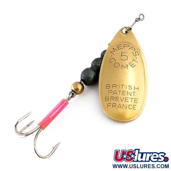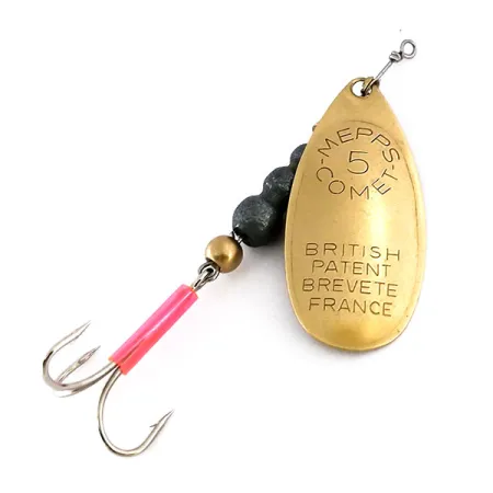 Muzejní archiv: Vintage Mepps Comet 5 Třpytka, Mosaz, 8cm, Růžový atraktor, #10199