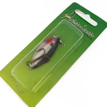 S hmotností 11 g (2/5 oz) je tato nástraha typu pilkr o délce 4,5 cm (1 3/4") kompaktním nástrojem pro vertikální přívlač. Model Wahoo Key Largo Swim'n Fin s produktovým kódem 16730 se vyznačuje klasickým stříbrno-černým provedením doplněným o výraznou červenou hlavu a detail oka. Jedná se o specializované vybavení vyrobené v Dominikánské republice z vysoce kvalitních komponentů z USA, navržené speciálně pro lov candátů a štik. Uvnitř těla se nachází akustická komora určená k vydávání zvukových signálů během jigování. Tento kus nebyl nikdy použit a zůstal zachován v původním balení na kartě „Premium Tackle“. Jeden trojháček připevněný pomocí kroužku vykazuje mírnou patinu na kovovém povrchu, zatímco samotné tělo nástrahy si zachovává svůj původní tovární lak.