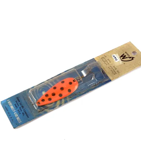 Výrazný červeno-černý tečkovaný vzor okamžitě identifikuje tuto plandavku Weber Spoon jako klasiku z poloviny století od společnosti Weber Tackle Company se sídlem ve Stevens Point ve Wisconsinu. Tato ukázka rybářské historie váží 11 g (2/5 oz), měří 6 cm (2 1/4") a je katalogizována pod kódem 2802. Nástraha zůstává v nepoužitém stavu, upevněna v původním modro-béžovém balení se sloganem „Weber Makes It—A Fish Takes It“. Zatímco háček a povrchová úprava jsou čisté, dobový obal vykazuje lehké stopy skladování odpovídající jeho stáří. Její jednoduchý kapkovitý tvar a zadní trojháček byly navrženy pro všestrannost při nahazování i trollingu. Tento již nevyráběný exemplář slouží jako hmatatelné spojení s dědictvím jednoho z nejznámějších výrobců rybářských potřeb v USA.