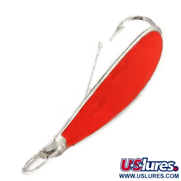 Výrazná neonově oranžová povrchová úprava pokrývá lícní stranu této 6cm (2 1/4") plandavky a poskytuje vysoce viditelný kontrast k postříbřenému tělu. Tato plandavka Weedless Johnson Silver Minnow UV s produktovým kódem 12487 váží 12 g (2/5 oz) a představuje moderní barevnou evoluci původního designu Louise Johnsona z roku 1920. Na rozdíl od standardních chromových povrchů využívá tento exemplář stříbření k vytvoření jasnějšího a bělejšího odlesku. Oranžová vrchní vrstva je speciálně navržena pro UV reaktivitu; při slabém osvětlení vydává hlubokou, zářivou záři, jak je vidět na snímcích z tmavé komory. Konstrukce z slitiny mědi a zinku je uprostřed znatelně silnější, což je geometrie, která pomáhá udržet jednoháček ve vzpřímené poloze. Tato rovnováha v kombinaci s integrovaným drátěným chráničem proti váznutí umožňuje lov v hustých leknínech nebo mezi padlými kmeny. Jelikož se jedná o vintažní model vyrobený v USA, kvalita zpracování odráží původní specifikace před přesunem výroby do zahraničí. Postříbření a UV reaktivní barva vykazují velmi malé opotřebení a veškeré prvky zůstávají strukturálně v pořádku, což této nástraze vynáší hodnocení stavu 4/5.