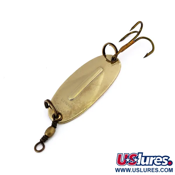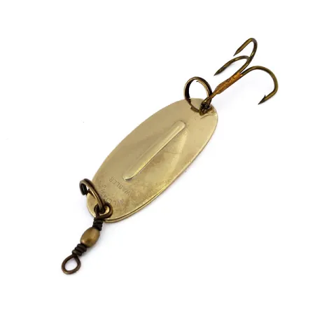Do středu této klasické plandavky je vylisováno podélné stabilizační žebro, charakteristický designový prvek určený k udržení stability při rychlém i pomalém vedení. Tento Williams Wabler, označený produktovým kódem 10619, vykazuje jasný povrch Gold, typický pro šperkařské pokovování této značky. S délkou 1 1/2" (4 cm) a hmotností 1/4 oz (7 g) se jedná o kompaktní nástrahu velikostně určenou pro lov štik nebo candátů. Exemplář je ve stavu 5/5, vykazuje velmi čistý povrch, kde ražby „Made in Canada“ a „Williams Wabler“ zůstávají ostré. Přestože design vznikl v Buffalu v roce 1914, tato konkrétní nástraha reprezentuje dědictví kanadského výrobního závodu, kam byla v roce 1978 soustředěna veškerá výroba. Obsahuje originální osazení, včetně ostrého trojháčku a obratlíku v mosazné úpravě, obojí zajištěno robustními kroužky.