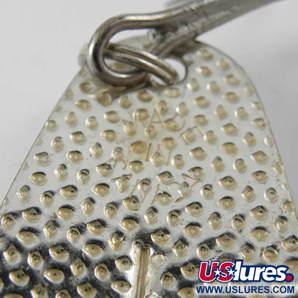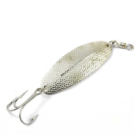 Tato klasická plandavka od Williams je postříbřená, váží 28 g (1 oz) a je postavena na charakteristickém stabilizačním hřbetu, který definuje sérii Wabler. Tělo o délce 10 cm (4") má tepaný povrch, což je prvek určený k rozptylu světla podobně jako šupiny nástražní rybky. Tato v Kanadě vyrobená nástraha s produktovým kódem 1188 ukazuje tradici výrobce v používání pokovení drahými kovy pro zajištění dlouhodobé viditelnosti ve vodě. Osazení zůstává robustní, včetně velkého trojháčku a obratlíku. Exemplář vykazuje pouze lehké povrchové stopy a má hodnocení stavu 4/5, přičemž integrita stříbrných povrchů i ostrá ražba značky Williams zůstaly zachovány.