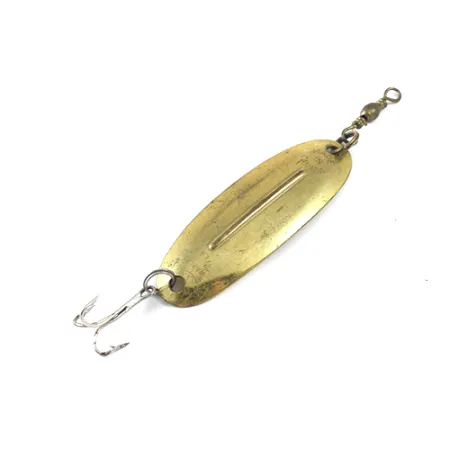 Tato plandavka s mosaznou povrchovou úpravou o délce 5,5 cm (2 1/4") představuje trvalé dědictví designu, který byl poprvé sériově vyráběn ve 20. letech 20. století. Tato Williams Wabler o hmotnosti 8 g (1/4 oz), označená kódem #1235, je postavena na základech kanadského řemesla, které je charakteristickým znakem značky od roku 1978, kdy se výroba plně přesunula do Kanady. Nejvýraznějším prvkem je vyvýšené podélné žebro procházející středem oválného těla, což je technické vylepšení navržené pro udržení stability při různých rychlostech vedení. Tento konkrétní kus je hodnocen stavem 4/5, má čistý povrch a původní osazení, včetně zadního trojháčku a obratlíku připevněného pomocí kroužku v přední části. Historicky využívané pro lov štik a candátů, ražené kovové tělo plandavky je synonymem pro tradici značky Williams.
