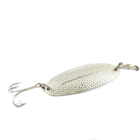 Tepané pravé stříbření dodává této 21g (3/4oz) kanadské klasice strukturovaný povrch navržený tak, aby efektivně odrážel světlo v různých světelných podmínkách pod vodou. Williams Wabler W60, katalogizovaný pod produktovým kódem 2703, měří 8,2 cm (3 1/4") a vyznačuje se pro značku typickým podélným žebrem, které zajišťuje stabilitu během přitahování, ať už při klasické přívlači nebo trollingu. Povrchová úprava z pravého stříbra je poznávacím znamením výrobního procesu Williams, což je technika oblíbená pro své jedinečné reflexní vlastnosti, které se liší od standardního chromu. Tento model je primárně určen pro lov štik a candátů a je osazen odolným trojháčkem a integrovaným předním obratlíkem pro eliminaci kroucení vlasce. Plandavka je ve stavu 4/5, vykazuje drobné povrchové stopy, které však nesnižují kvalitu stříbřeného povrchu. Tepaný vzor poskytuje výrazný hmatový vjem a komplexnější odlesky ve srovnání s hladkými typy plandavek.