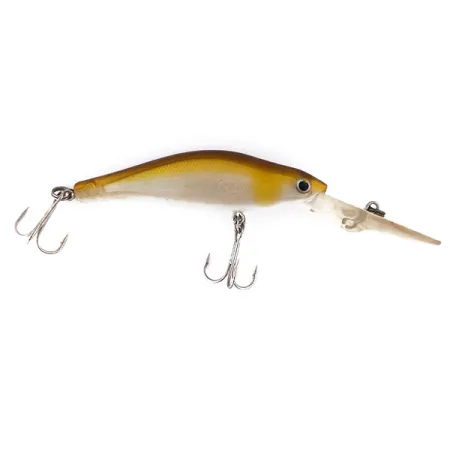 Zlaté a olivově hnědé tóny podél hřbetu poskytují přirozený kontrast k perleťově bílým bokům této 6 cm (2 1/4") nástrahy Yo-Zuri/Duel. Tento 3DS Shad SR o hmotnosti 6 g (3/16 oz), katalogizovaný pod kódem produktu 10418, je v Japonsku vyrobený vznášivý vobler (suspending) ze série Hardcore & Bass. Výrazná čirá potápěvá lopatka umožňuje nástraze dosáhnout hloubky 0,1–1,5 m (0,3–5 stop), což z ní činí přizpůsobivý nástroj pro nahazování i trolling. Tento exemplář je ve stavu 5/5, nevykazuje žádné známky opotřebení původního povrchu ani dvou továrních trojháčků. Tento konkrétní model vyzdvihuje precizní výrobu, kterou je Yo-Zuri známá, zejména způsob, jakým je lopatka integrována pro zajištění stability v cílové hloubce.