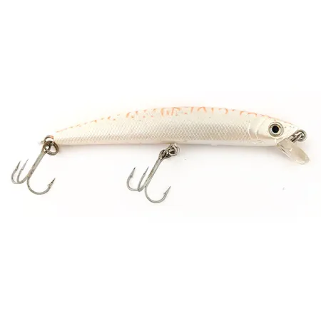 Texturovaný perleťový povrch dodává tomuto Yo-Zuri Monnow (S) jemný lesk, který doplňuje výrazný oranžový vzor kostry podél hřbetu. Tento potápivý minnow z Japonska o hmotnosti 10 g (1/3 oz) je stvořen pro všestranné techniky nahazování a twitchingu. Tělo o délce 9 cm (3 1/2"), označené produktovým kódem 13150, je vybaveno krátkou průhlednou lopatkou pro práci v mělkých vodách, než se projeví jeho potápivá povaha pro pokrytí různých hloubek. Sběratelé ocení realistické stříbrné oči a originální trojháčky se stříbrnou povrchovou úpravou. Tento konkrétní kus je nepoužitý, ve stavu nového výrobku. Je to spolehlivá volba pro lov okounů a štik, která ukazuje precizní výrobu, jíž je značka Yo-Zuri/Duel proslulá.